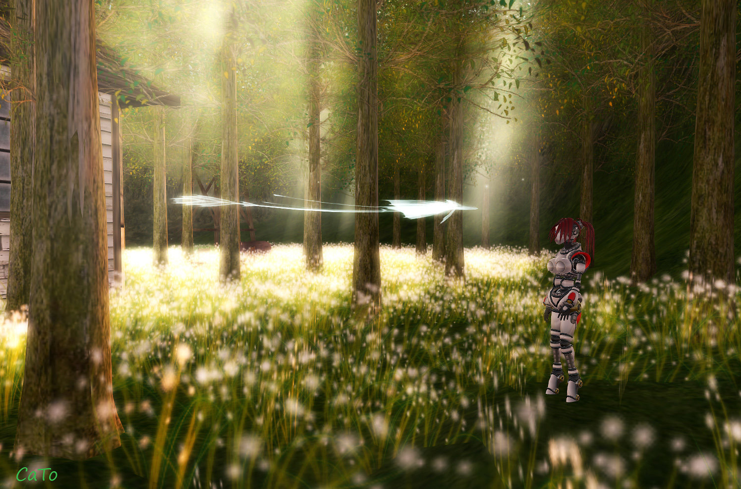 +Mocha+ Biosphere is a lovely, cute sim with amazing use of lights and meadows! I just love to go there from time to time and watch the bunnies, the flying ‘ghost’ (not sure what it is, but its just awesome) and enjoy the overall scenery. I was here on one of my robot-travels, and made this picture, a personal favourite which I also use as desktop-wallpaper:
