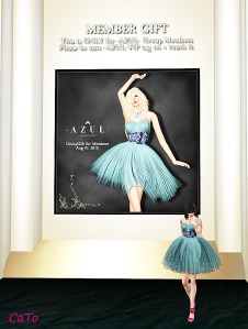 I am to first to admit I go to Azul every month, to check out the gift..then join the group and pick up the gift when I like it, and then leave the group…..Yeah, maybe that’s not the intention but I am in a lot of groups already and like to keep a slot open. (Oh and no, I don’t feel guilty, as I have bought a lot of dresses there for full price! ).