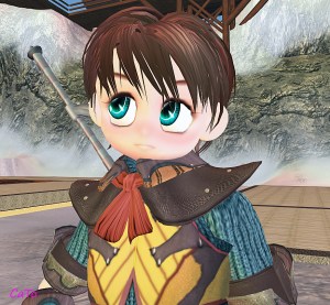 For those who think all katana-fighters look like Ninja’s with black masks or are standard dressed as Ronins in heavy armors…I came across this little man, and allthough he looks very cute and harmless, it is a killer and good fighter!