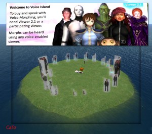 Today I went to Voice Island, it’s a tiny (ugly!) piece of land where you can buy the so-called ‘voice morphing packs’. Meaning, when you pay 750 LS for a pack, 5 morphed voices will be added to your ‘speak’ button and your voice will be changed when you speak. For one month that is!