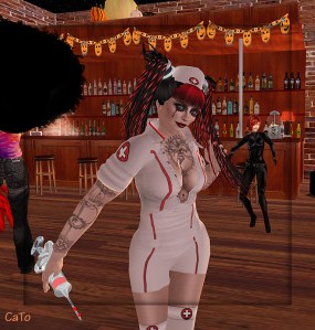 I think I can say the event was a success,and lovely to see some real ‘pixels’ from people I only know from the forum. At some point the sim was full! The band, Choo Choo Chicks was great and it was very cool to see everybody took effort in dressing up for Halloween. I took a lot of pics and put those on Flickr.