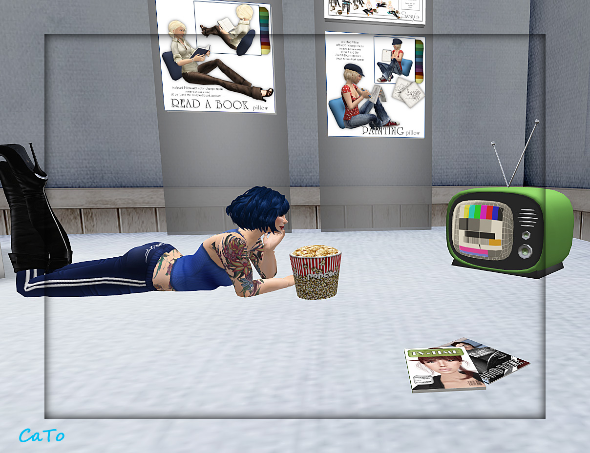I had my bit of fun trying out the animations, sitting in huge Martini and bought some outfits. Then I watched tv and had popcorn, hehe!