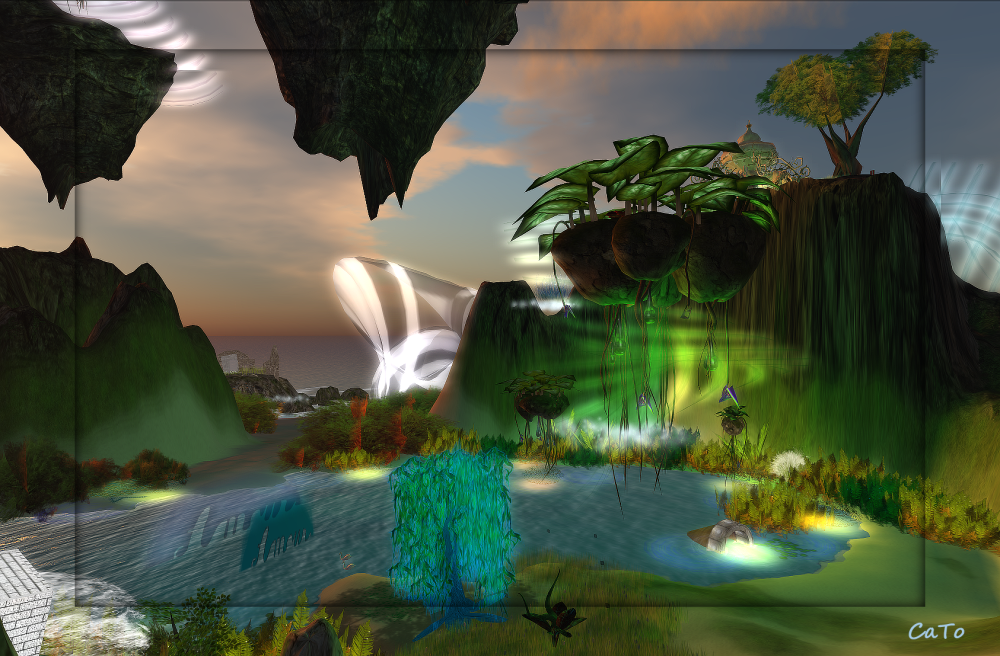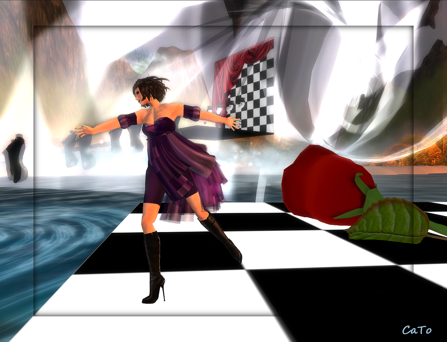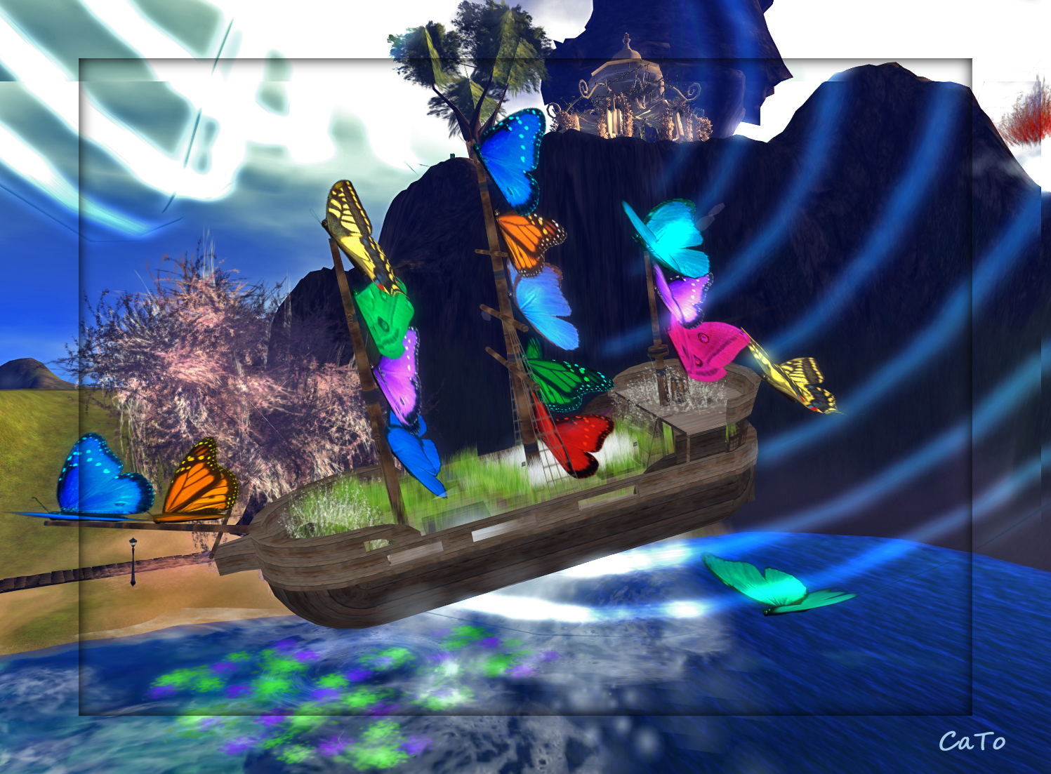 It’s colorful, with a pirate ship filled with grass and butterflies, chess pieces and some funny poseballs here and there. Also, on top of the mountain you will find a lovely romantic gazebo, covered in flowers, with the intan dances for couples! I met some newbies who where completely lost, it was their first day in SL and what a sim to start your Second life, good choice guys!