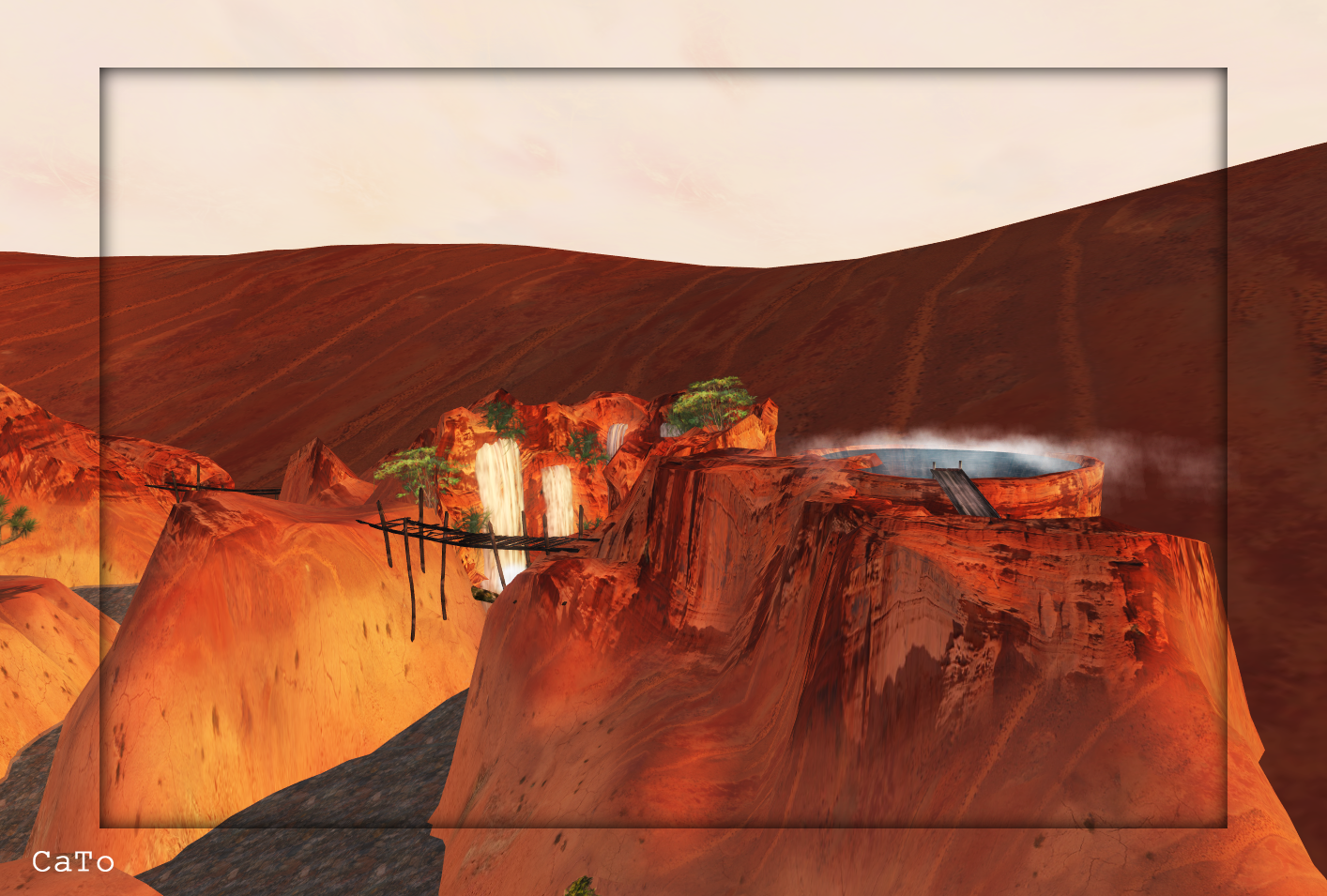 This place is a red desert (duh) and lovely when in sunset! If you do not have a horse, no problem…at the landing point you can rez a free one! Also, a bit further in the desert there are bikes available to cross with! I like this place, it is quiet and empty – as a desert should be? And also perfect for taking pictures!