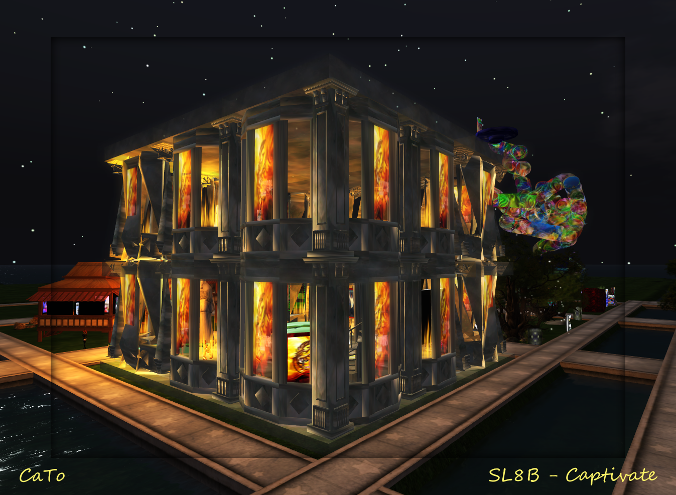 This morning I visited two sims on SL8B (as it is open to builders and press!); Astonish and Captivate. Lovely builds, some bizarre, others cute! I played a bit with the realtime shadows (in Viewer 2.7) and some windlightsettings, SL8B is perfect for taking pics!