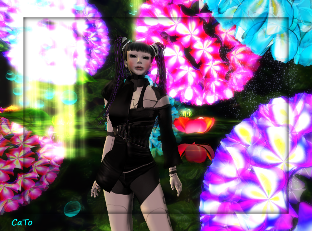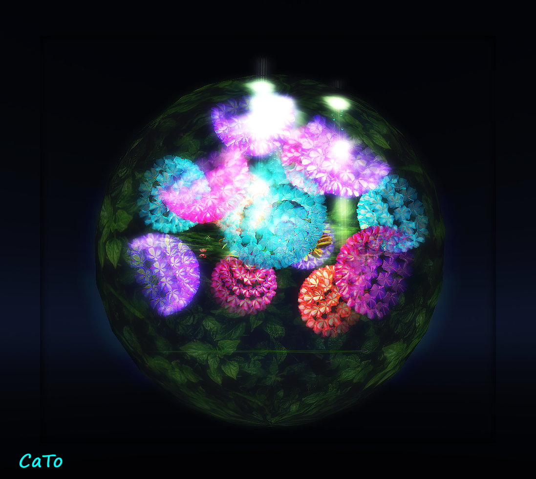 On one of my travels, I tried out an old LM to [Leroy] – that amazing snowy sim with the pirate ship – and discovered they have a temporary exhibition up in the sky called – ajisai –. You can reach it by using the teleporter on the landing point of the pirate ship.