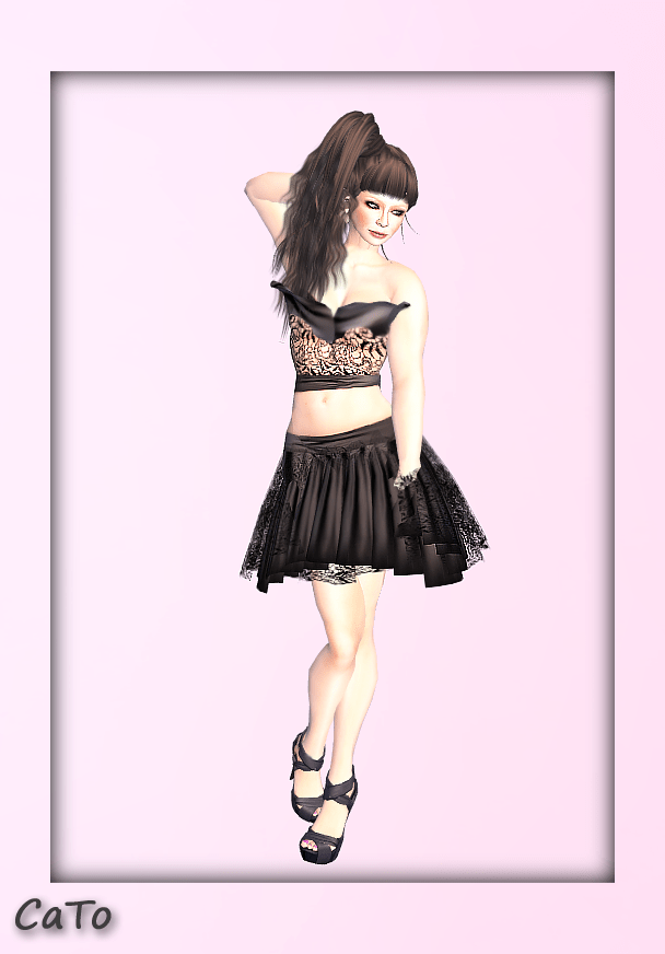 Yay! To my delight I ran into a new groupgift for members at Azul! It is a two piece,  in black. A bit sexy as well, I had to adjust the prim-attachement on the chest quite a bit – to prevent a nipplegate! I love the skirt, it’s super flexi and feminine!