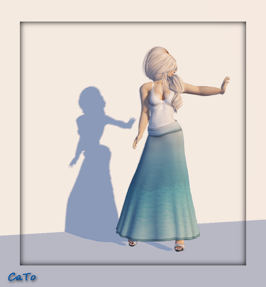 I strongly recommend you to, if you want to buy a mesh-outfit, try on the demo first to see if you are happy with the shapes provided. I was lucky enough, I did not need to change my shape to fit this skirt, but in some cases one may need to – as you cannot modify the clothing.