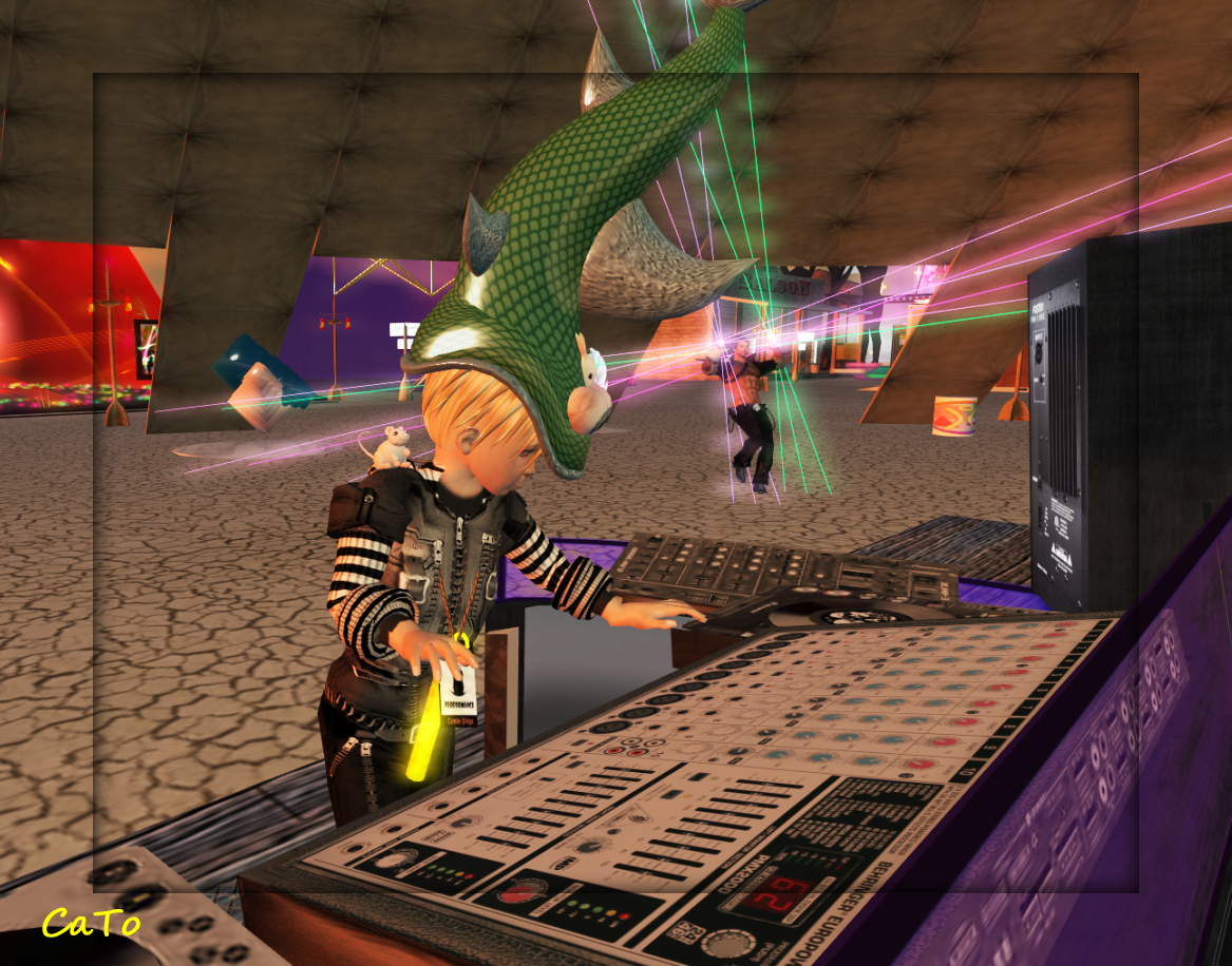 After Gemini’s show I wandered around a bit and ended up at the Tokyo Stage where DJ Amiga500 was playing trance music. Not very busy, a bit quiet even, in the beginning but soon more people came in. A nice surprise to see Karelia, she was walking around and spotted me on the mini-map :).