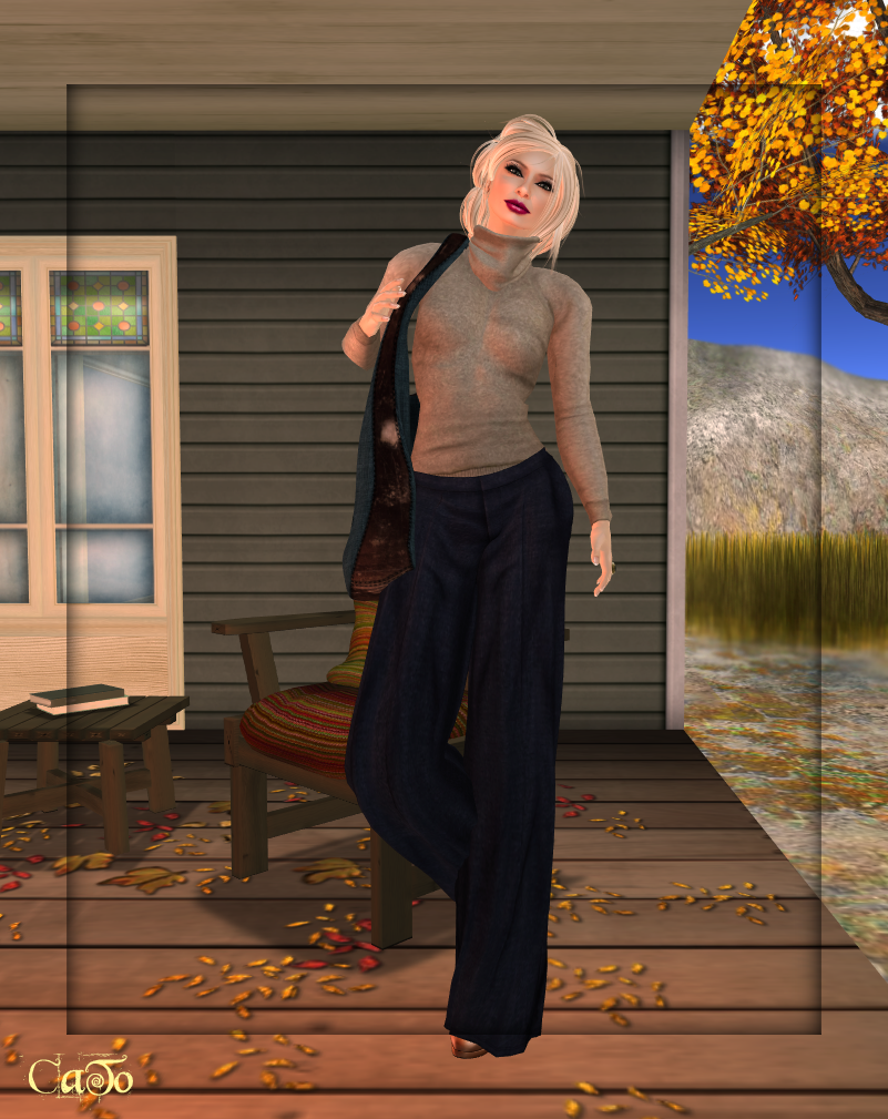 I treated myself on a sweater, pants (mesh) and a cool shoulderbag(mesh), all from Celoe. I really love the textures and the way it wears, it almost feels as comfy as it looks! Not cheap though, but I found it well worth the Linden Dollars.