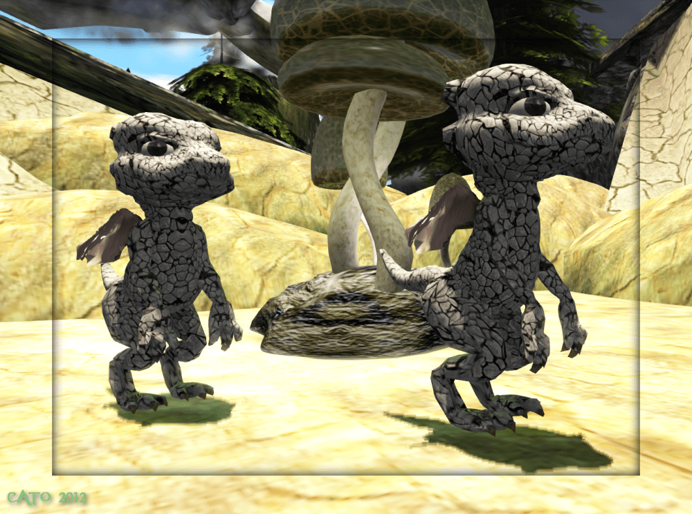 I love this place to play around with shadows and windlightsettings, the little Dragons do not move so they make perfect models!