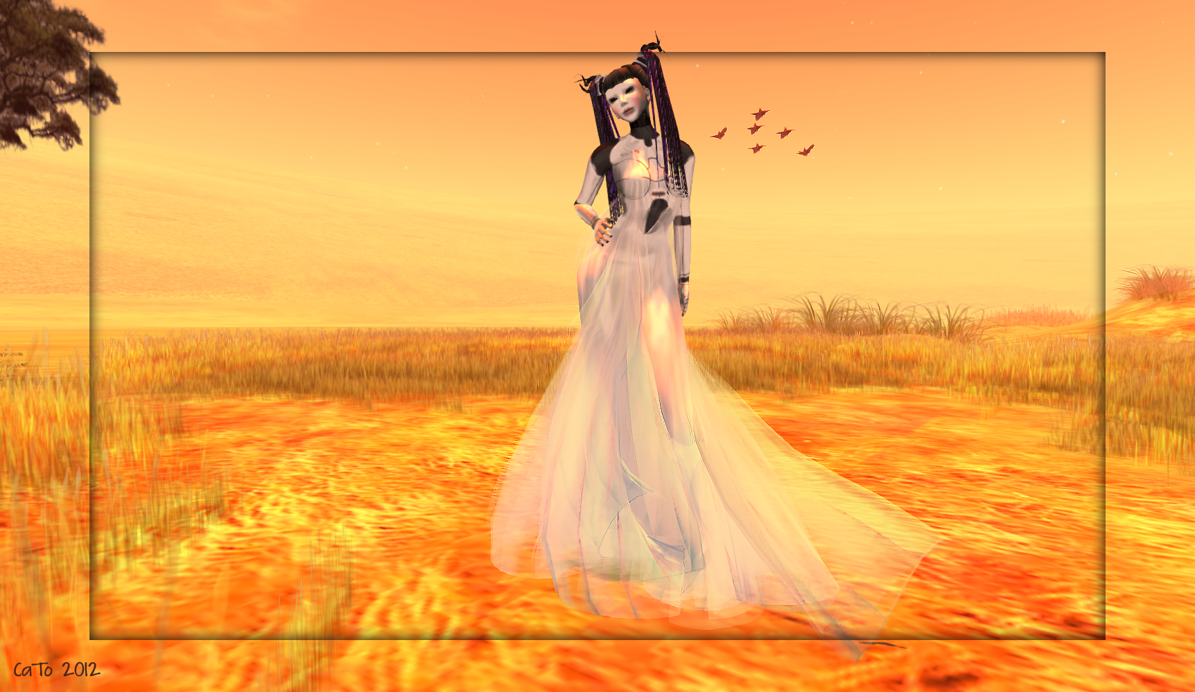 The title of this post pretty much sums up my Sundayafternoon. While I should be packing my suitcase for travelling this week, I was on a gorgeous sim: Noweeta Grassland – dressing up my robotavatar that has been sitting in my inventory for way too long!