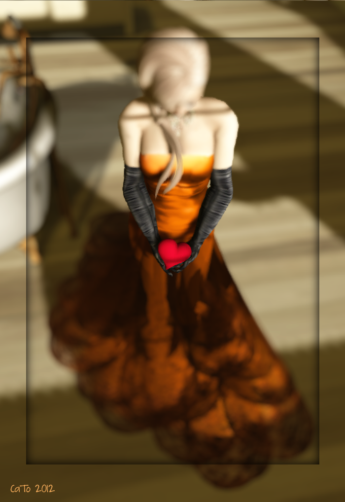 A short post today: Malaga in Mandarin is the new release from Azul, since ages my favourite designer when it comes to gowns. I just love how her skirts move, so smooth..and the delicate textures…irresistible! Mandarin is a copper/orange color – it came with cuffs and bows/ribbons in black – but I decided the dress looks better on me without the prims.