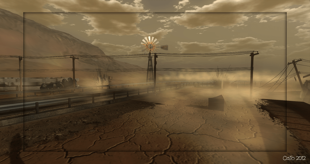 The track in situated in a desert, you hear the wind blow and sand clouds pass by. Some cars are parked near an old, shabby looking garage and you really feel in a deserted place. I am not a racer, so I left the track for what it was and simply enjoyed the surroundings and made some pretty pictures – playing with several windlightsettings in Niran’s Viewer. Very nice made sim, cool details and indeed lovely for those who like to make pictures!