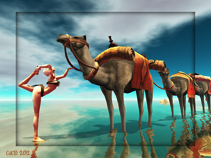 This morning, while hiding in my office from the heat (yups, I am a real basement dweller) outside I was travelling around in SL and ended up in a desert of all places. One would have thought I was more in the mood for Iceland or something Arctic but hey…it’s Second Life!