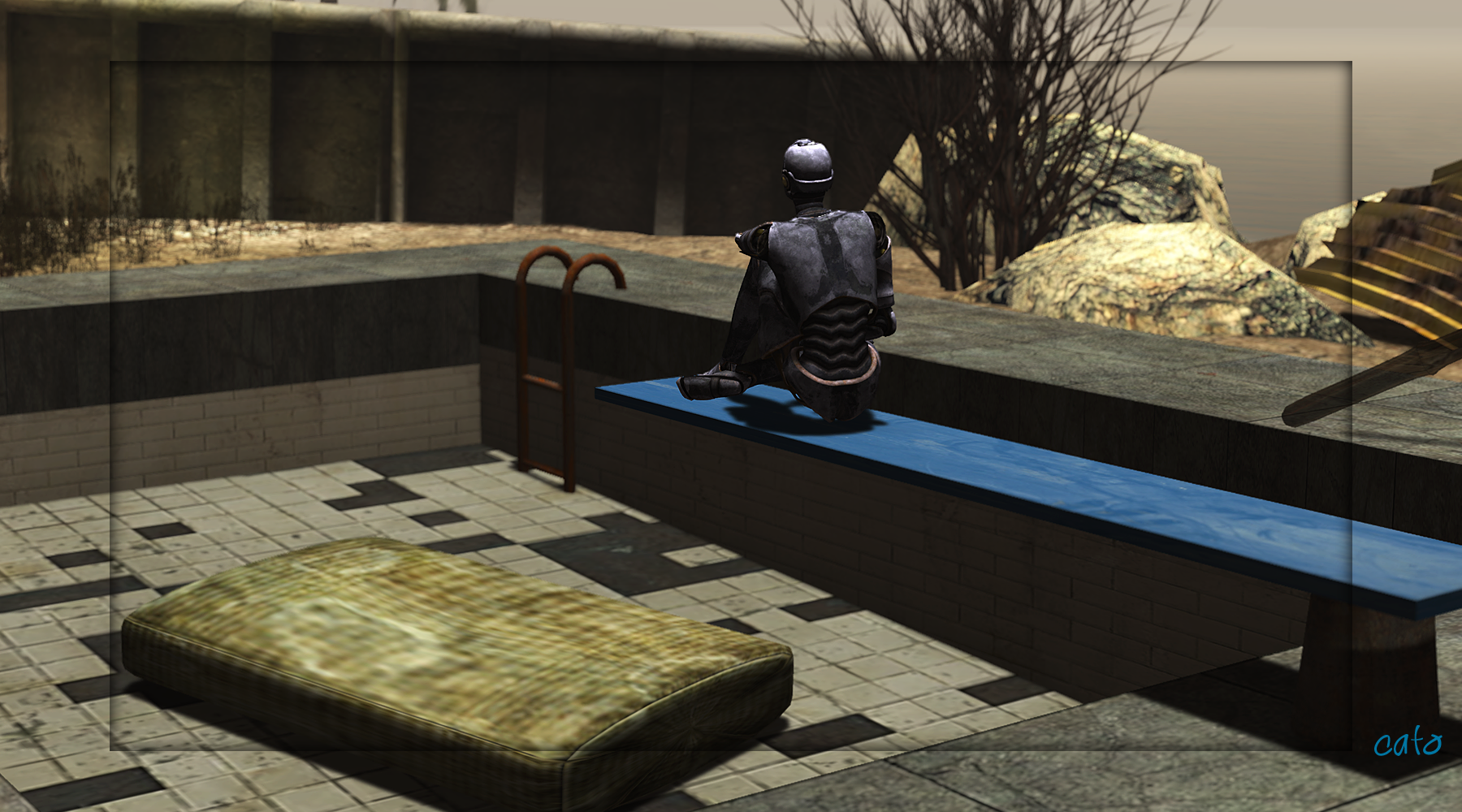 A few days ago I visited The Last Stop, a cool place for a rusty Android, but all life or nonlife-forms are welcome! The Last Stop is a hang-out, there is a club and most of all (well for me) it is great to take some cool pictures and play with all kind of windlight settings to get a bit dark – nuclear wasteland…- effect. Something else than my usual almost full bright images!