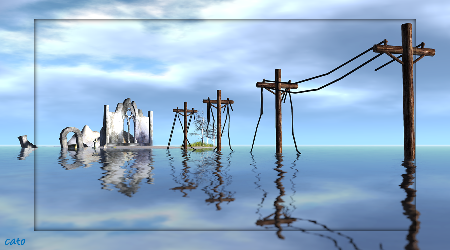 It is a watery sim, with not much on it, but sometimes less is indeed more and the few buildings make it chique and photogenic! Good for at least an hour of photo-fun!