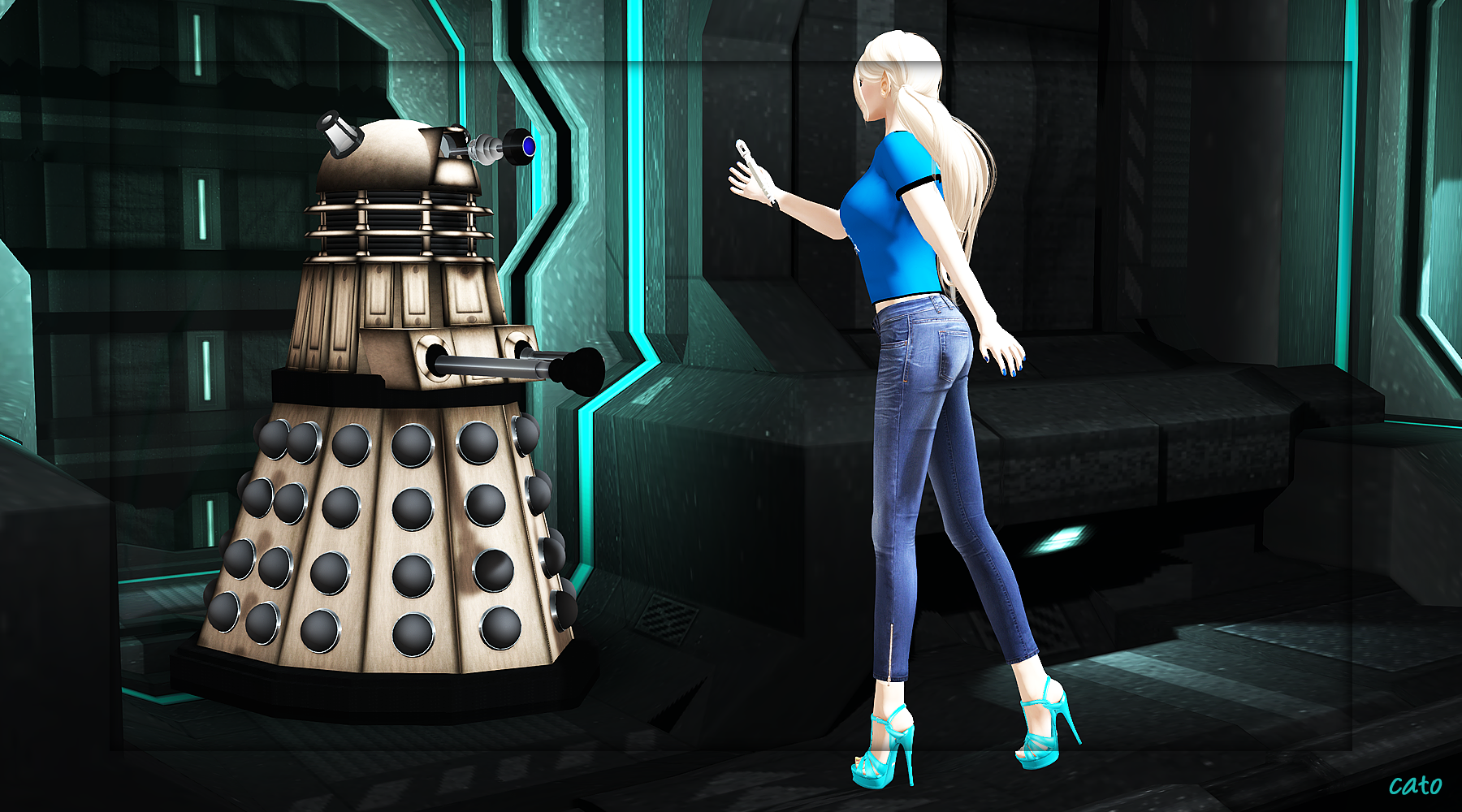 Editted: well, that’s funny….just when I was making this blogpost, Strawberry Singh published her new Monday Meme for this week, about creating your SL Filmposter with your favourite movie. Now this post and my adventure of today doesn’t include a poster for Dr Who, but I will consider this a participation anyway: Caitlin Exterminates!