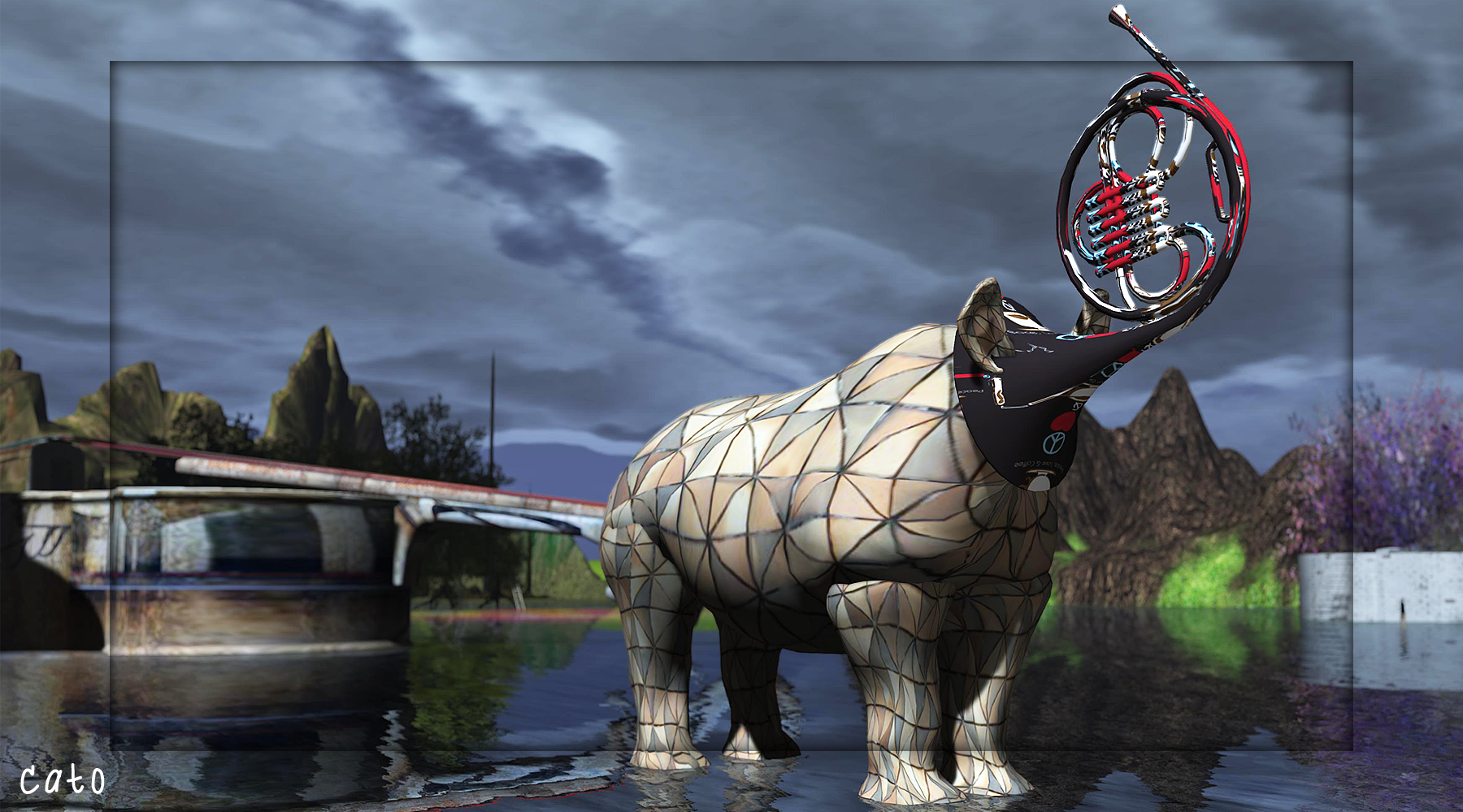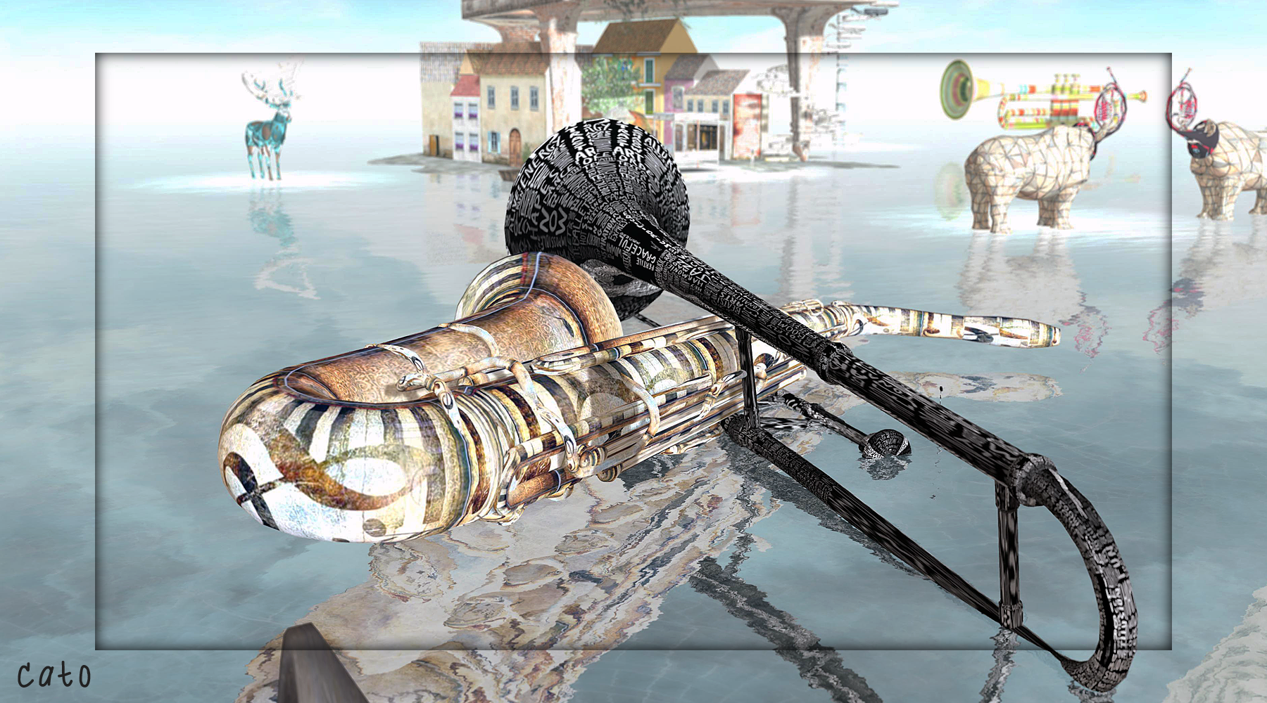 A watery sim, filled with giant instruments made with all kinds of fantasy textures, making it a wonderful place to relax and enjoy the view. And of course it is also a great place to take pictures if you are into that :). The landingpoint is in a small town plaza, which – once you start walking you will notice – is built under a giant piano!