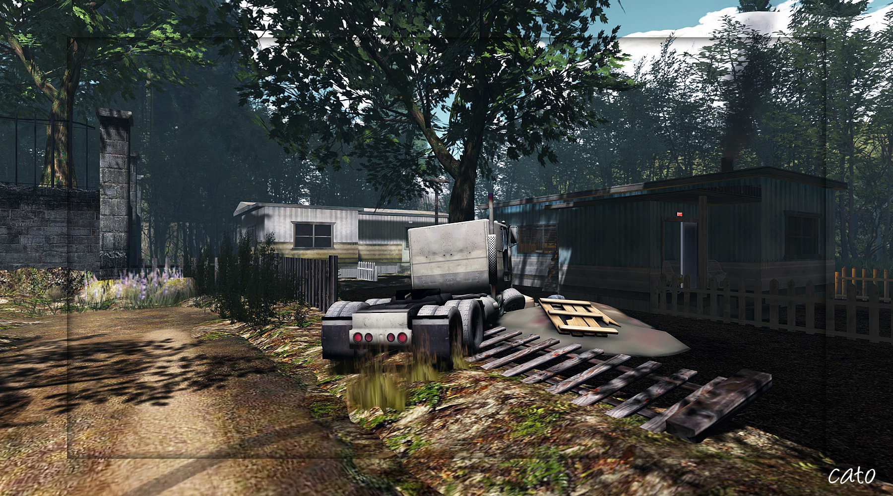 The Missing Mile is a ‘dark rural community’, and it looks great and very detailed! There is a lake, a trailerpark, a church, camping places and forests. Great for some serious exploring as there is a lot to see! I did not enter any of the private homes, but that is not needed at all, the outsides great too.