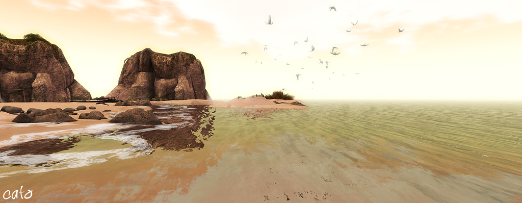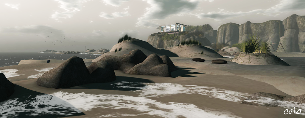 Otium is, according the landinformation, Latin for leisure and laziness and that is what this gorgeous sim is all about. Broad beaches with white sand, rocks, birds, places to sit and relax while admiring the view and a cute little café on top of a rocksection in the middle.