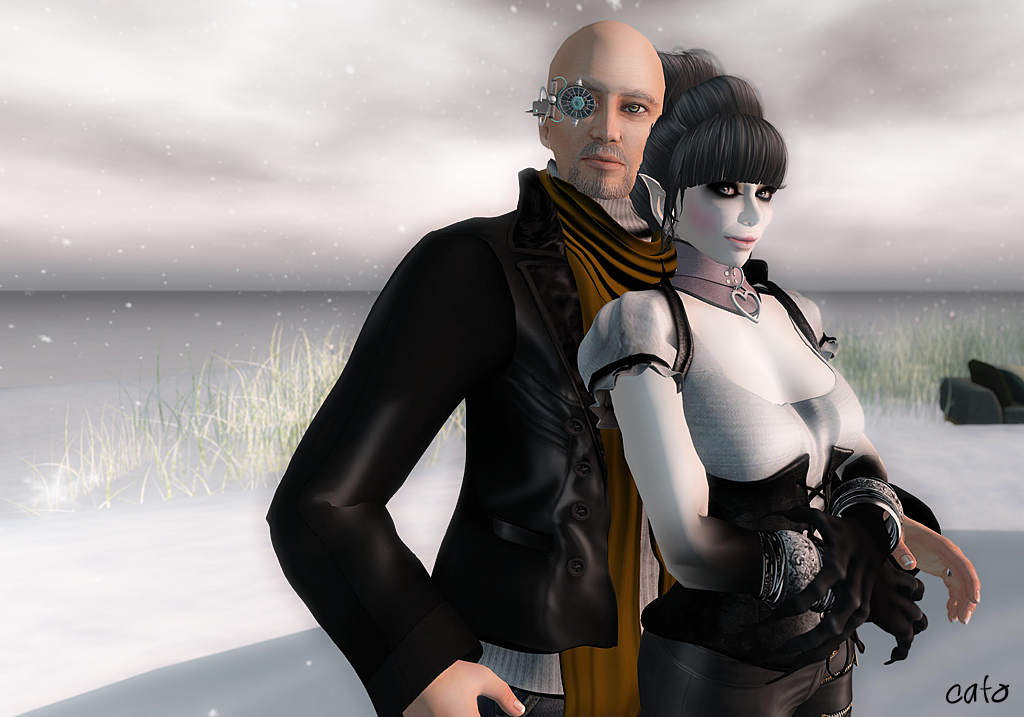 When Don and I met for the first time, many years ago, we both looked different…although not so much as I thought. After Don had his picture taken by Trinetty Skytower, picturing him with both a young and mature face (THIS is the most awesome portrait I have ever seen!), we got inspired to make pictures of us two – and see the differences in how we used to look. We did not literally go back to 2009, we re-created our looks with current (mesh) items.