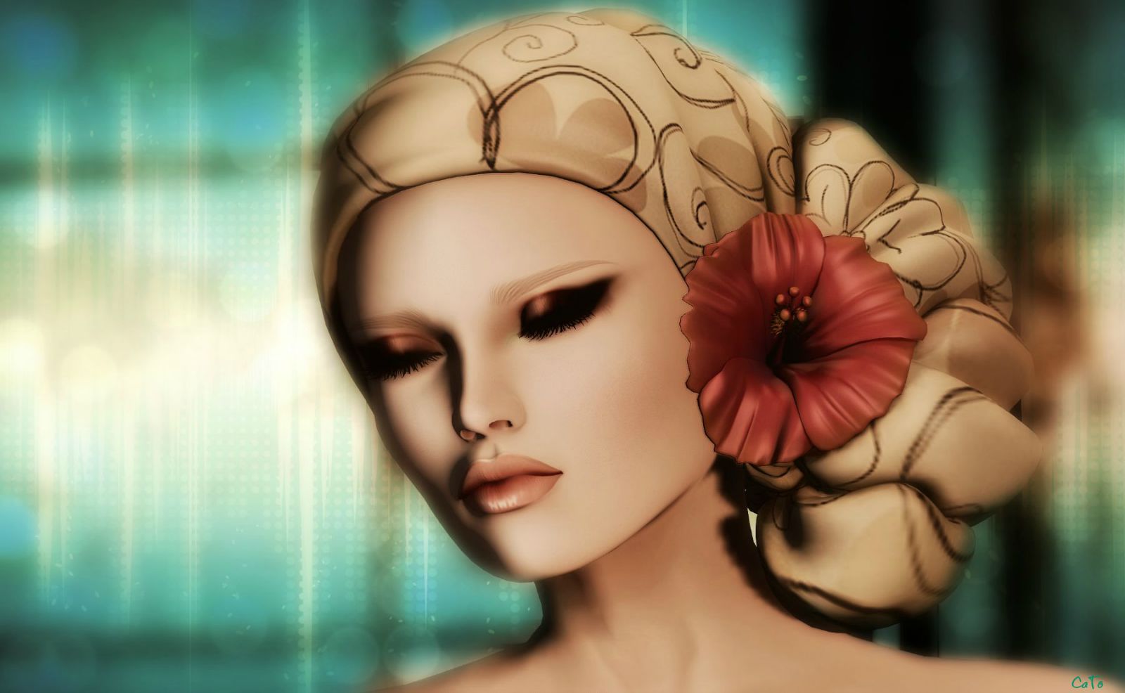 I fell for the headscarf with delicate flower by Lelutka, and I may wear it more often than just this coming Sunday the 26st July – when the Hair Fair ends and when it is actually Bandana Day!