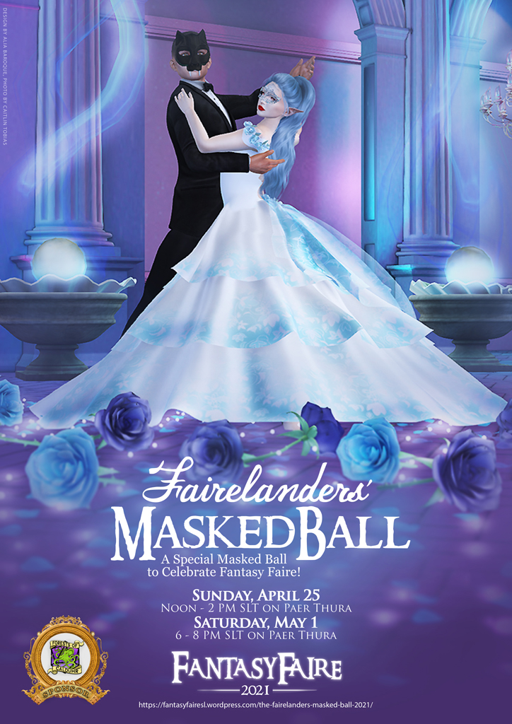 One of the big social- and dance events on the Fantasy Faire in Second Life is the famous Fairelanders Masked Ball. To accommodate most of the timezones there are two balls, and I went to the one suited to Euro timezones, tonight!