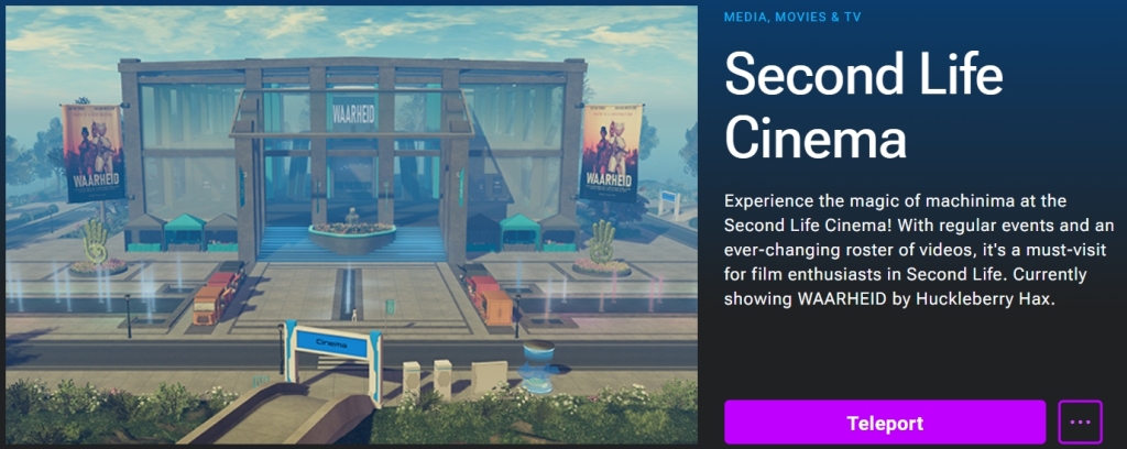 Click here to visit the Second Life Cinema (or here for the destination guide entry).