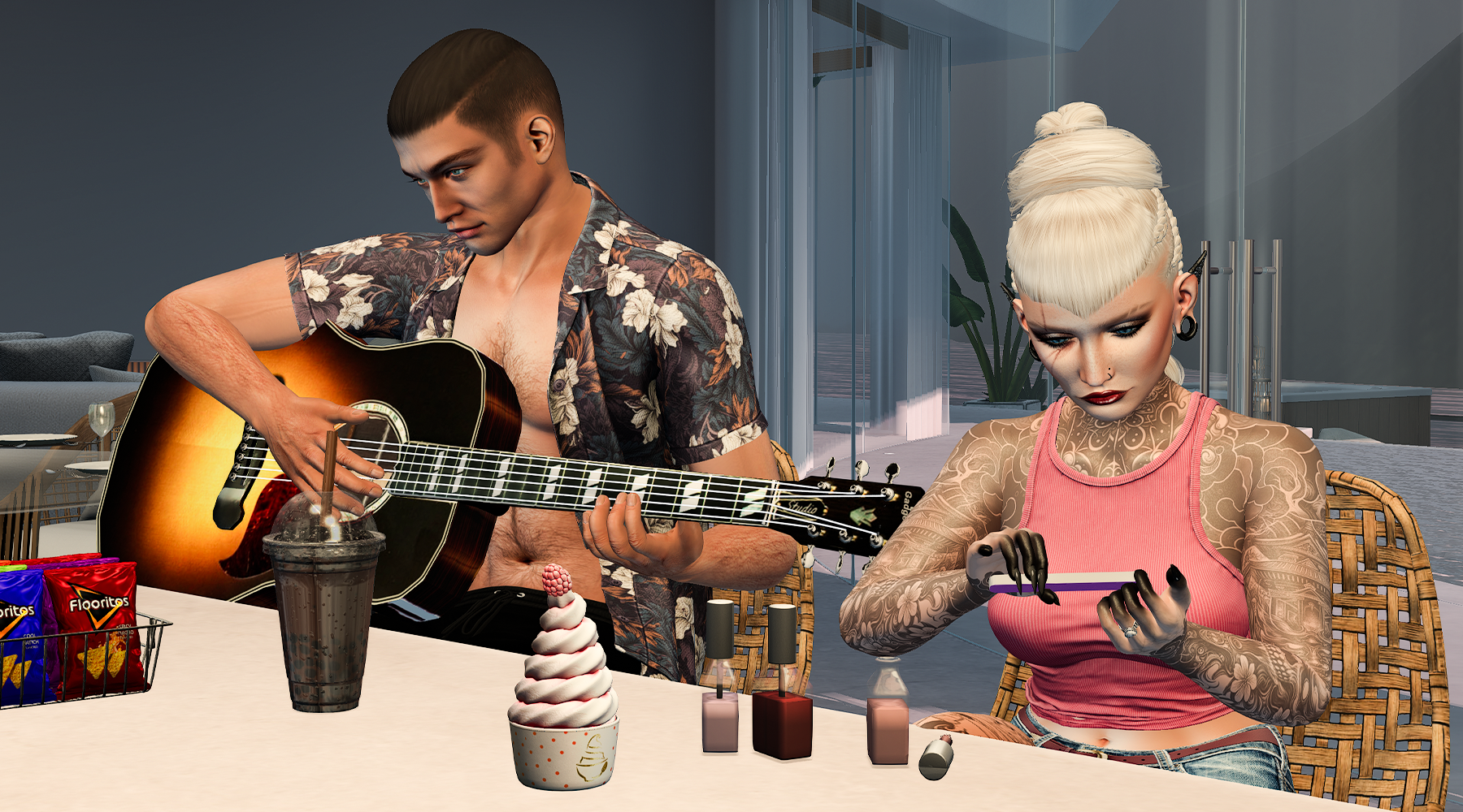 For nighttime entertainment, Huck brought not one but two guitars. Because apparently, one acoustic instrument is never enough when you’re trying to woo your inner rockstar in a luxury villa. I brought my manicure set and did my nails while he strummed moody chords and pretended he didn’t know how to play Wonderwall. (He does. We all do. It’s the law.)