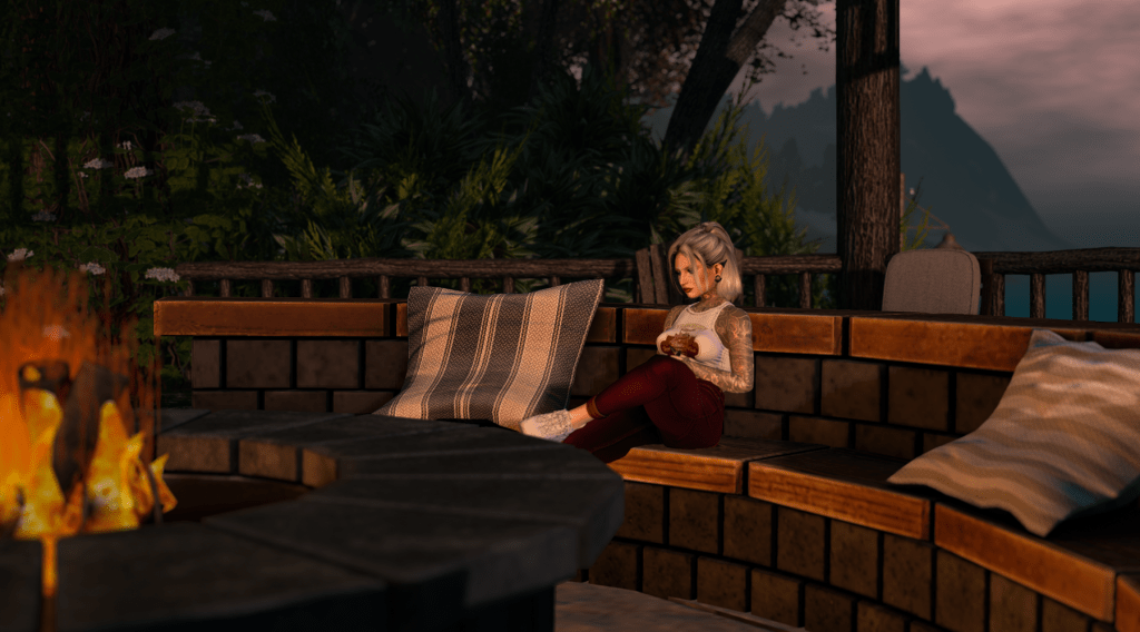 Which brings me to today’s little secret: sometimes I log in, find a gorgeous spot, and then… do absolutely nothing. No styling outfits, no sorting inventory, no joining group chats, no dramatic monologues about my land tier. Just me, sitting on a bench like a confused NPC, quietly admiring the view while my AO does its very best to pretend I’m deep in thought.