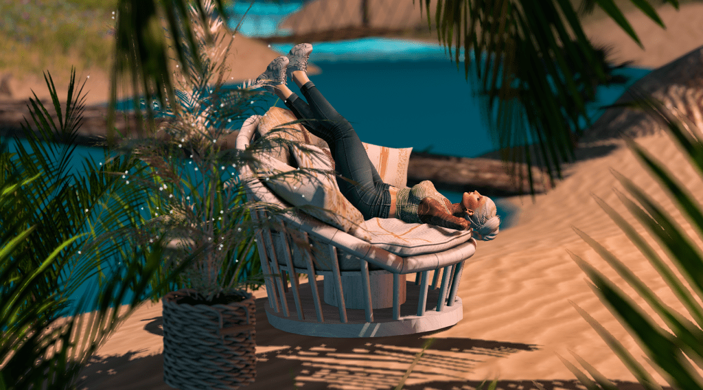 This isn’t laziness. It’s digital self-care. It’s a quiet protest against “always being busy” culture, even in a virtual world. You’re not wasting time, you’re soaking in ambience. You’re recharging. You’re the main character in a slow, artsy machinima that no one asked for but desperately needs.