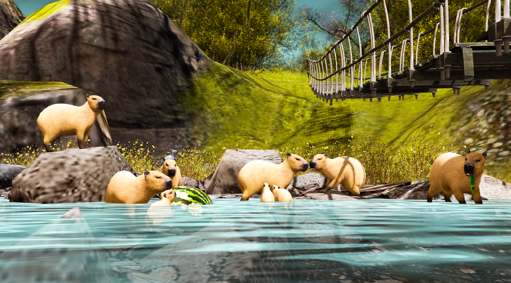 After surviving ‘The Swan Incident’, I ventured further. Bloom Haven is crawling with animals. And by “crawling”, I mean absolutely swarming. I’ve never seen so many critters in one region before. Geese strutted about like they owned the place. Cows lounged in the meadows, chewing and judging my outfit. Sheep grazed on a steep hill, raccoons played in a pond, and capybaras… well, capybaras just existed in their zen little way, silently telling me to calm down about the swans.