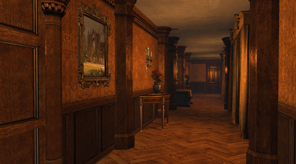 And what a mansion it is. Hera’s build is breathtaking: a massive abbey/castle/manor (why choose?) rising out of the mist, glowing softly under a moonlit sky. It feels like stepping into a period film, the kind where everyone speaks in poetic metaphors and probably dies tragically halfway through. The rooms are beautifully decorated, filled with little details that make you want to stop and admire every corner.