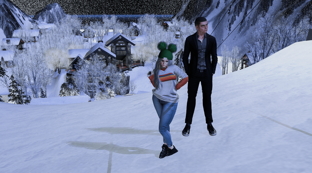 You can skate, toss snowballs, or simply get lost in a whiteout and call it “immersion.” There are also adorable cabins scattered about for warming up, cuddling, or watching other avatars fall on the ice.