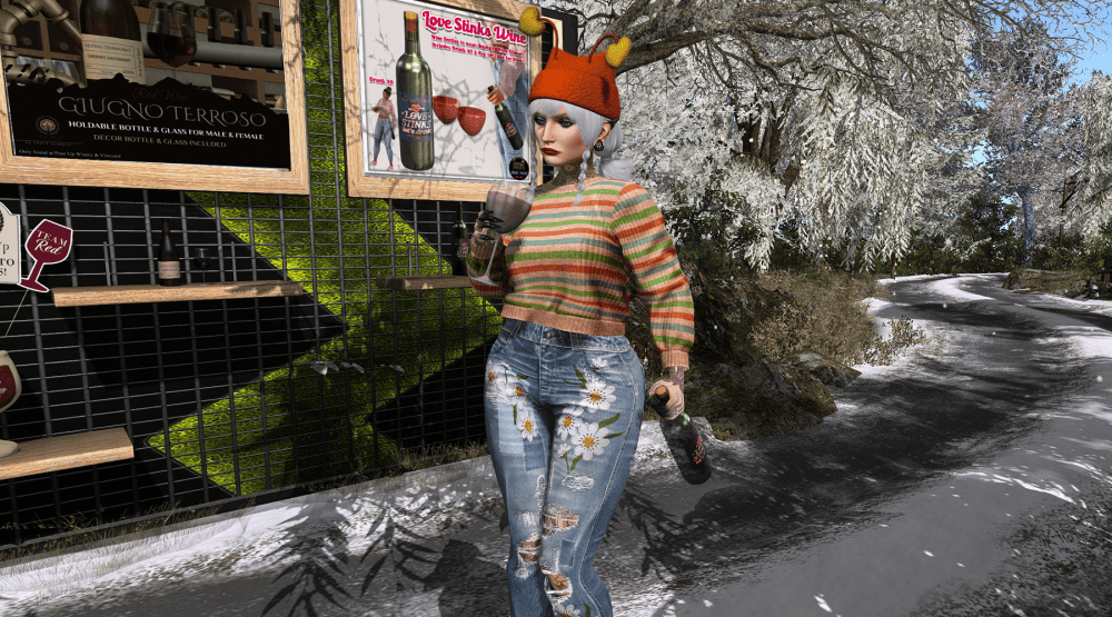 Pour Up Winery & Vineyard has been around since 2021, which means they’ve had years to perfect the art of enabling Second Life residents, and it shows. The moment I arrived, I knew I was in the right place. Snow-dusted scenery, vineyards, and an atmosphere that whispered softly: “It’s wine  o’clock somewhere. Possibly everywhere.”