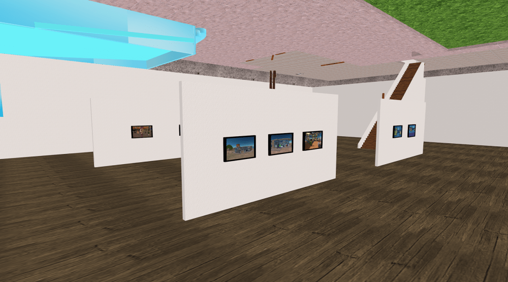 Downstairs, the mansion reveals its true purpose: a small gallery space and time capsule filled with snapshots from Second Life’s earliest days. And this is where the tone shifts.